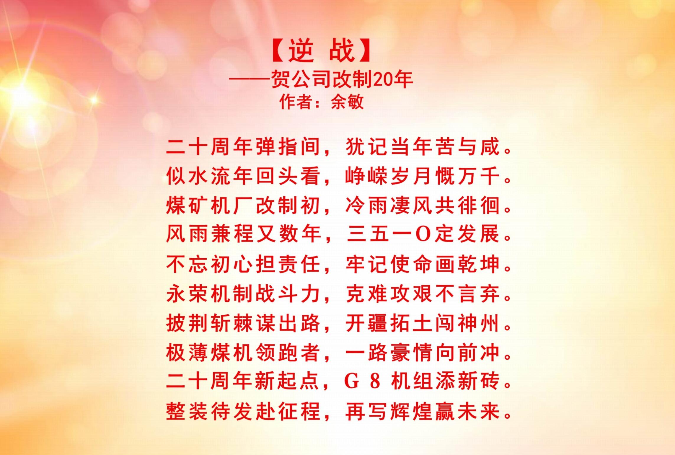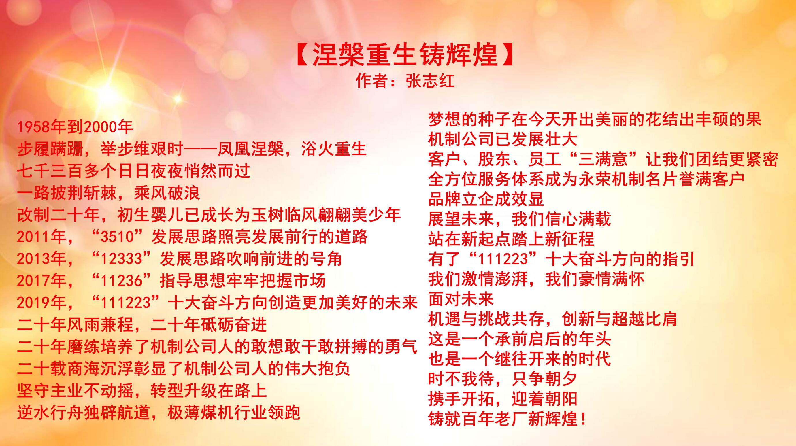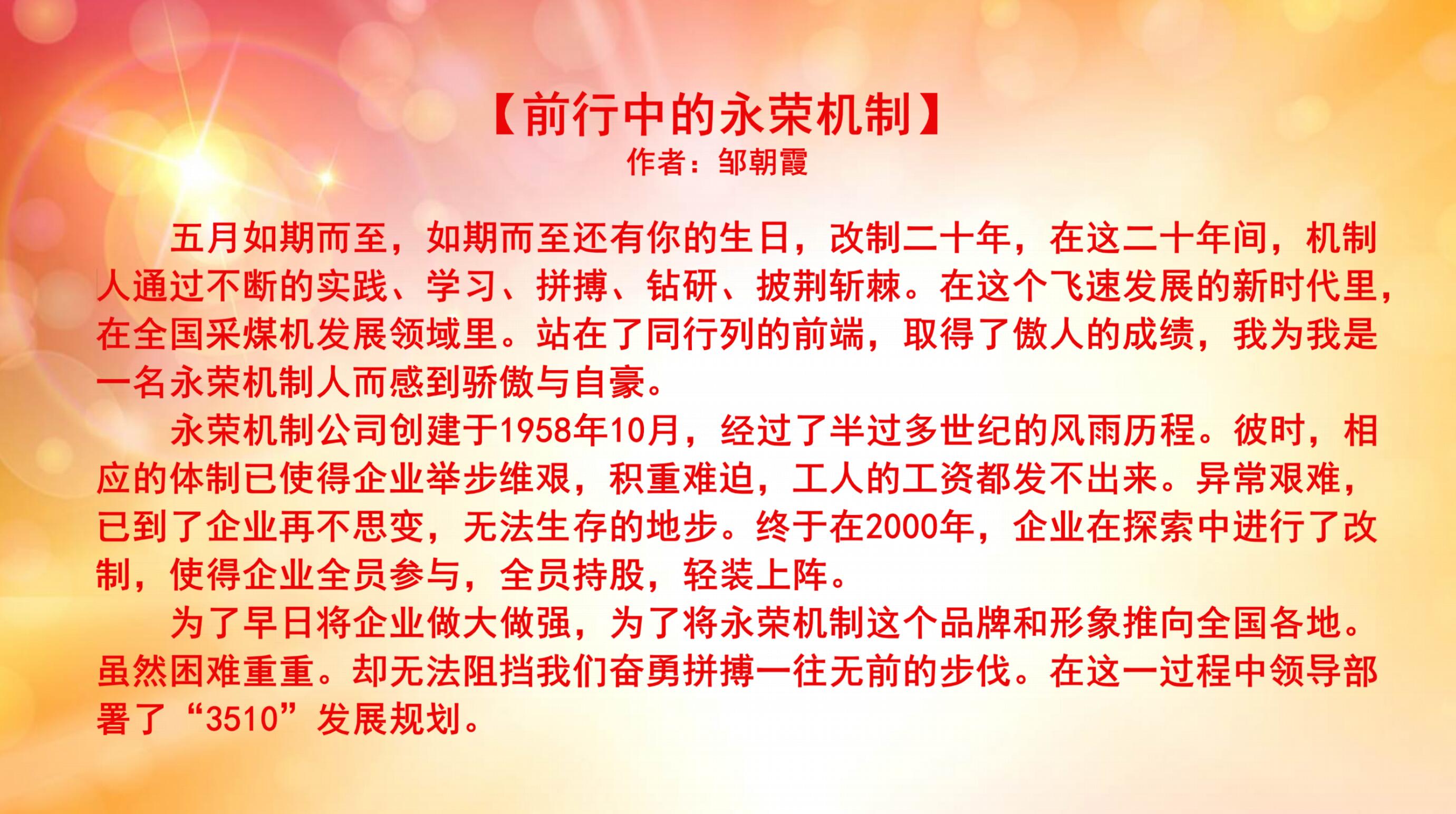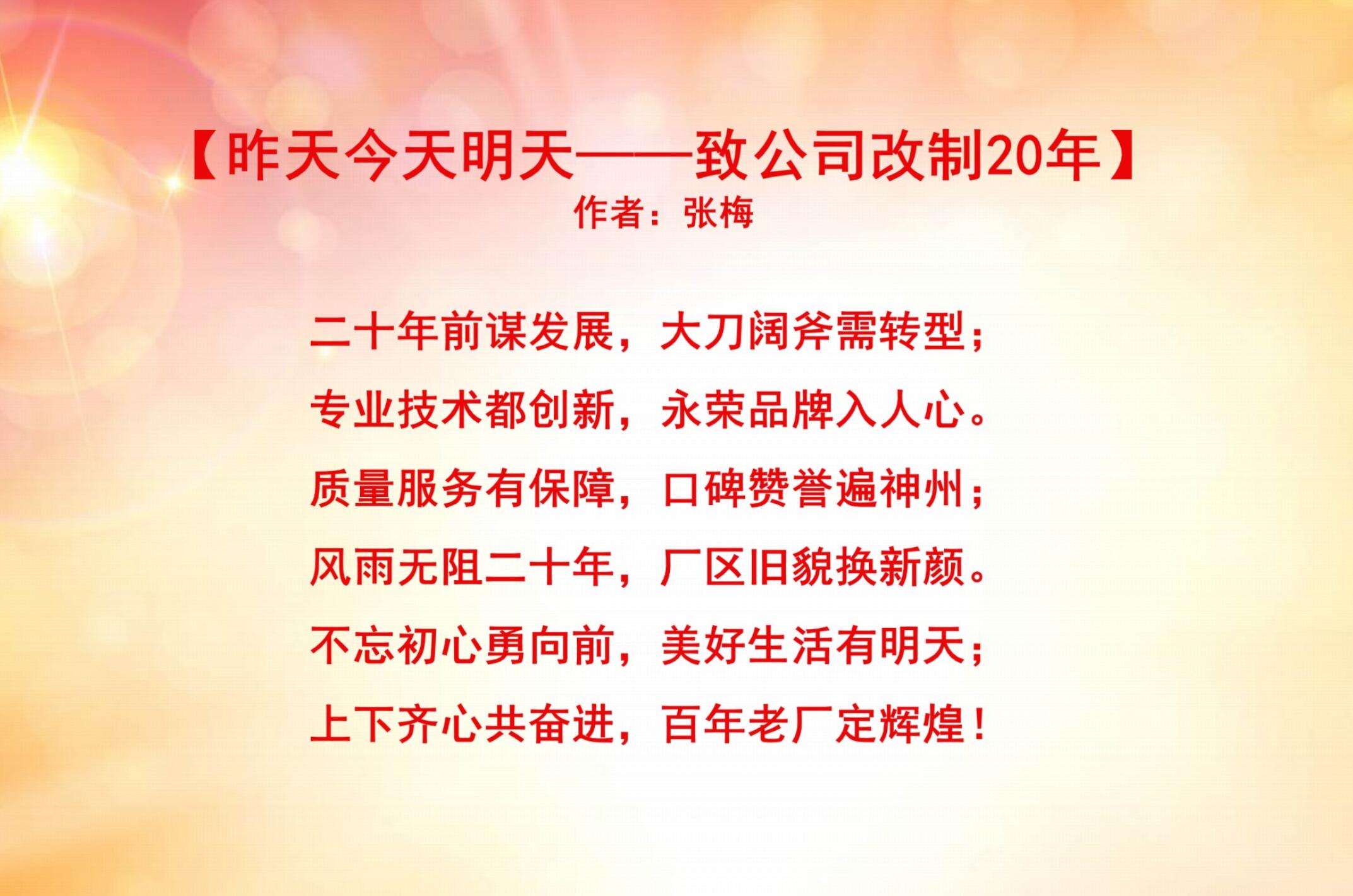 上一篇:慶祝永榮機(jī)制公司改制20周年優(yōu)秀文學(xué)作品展